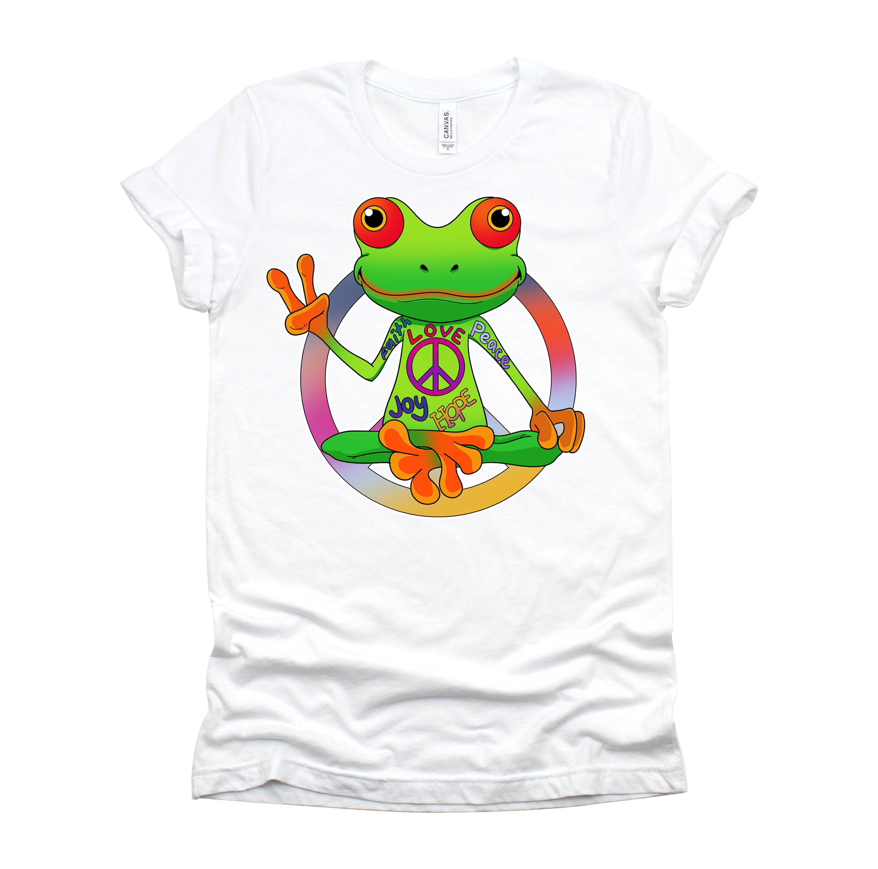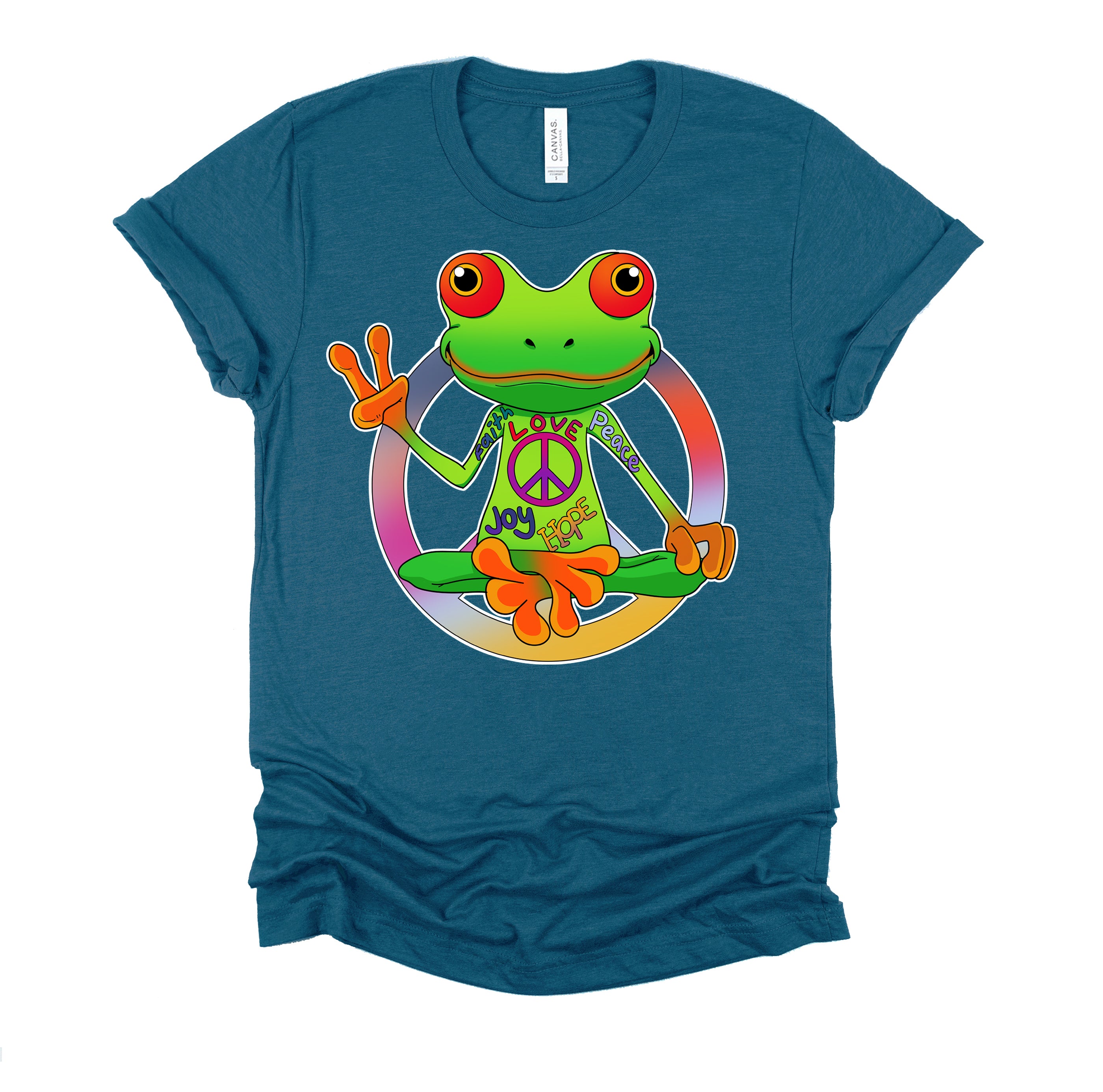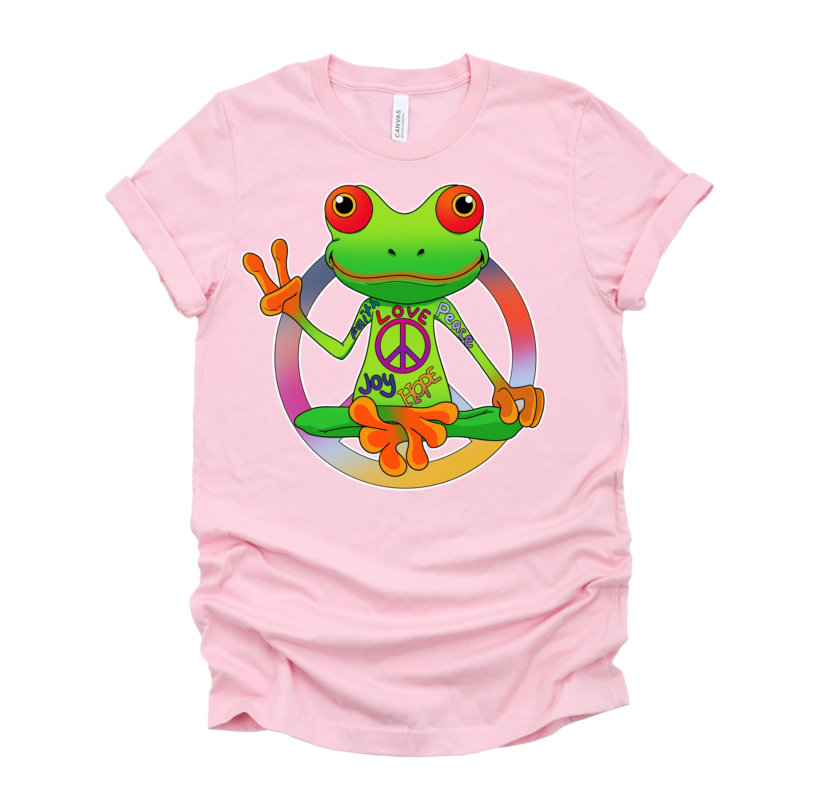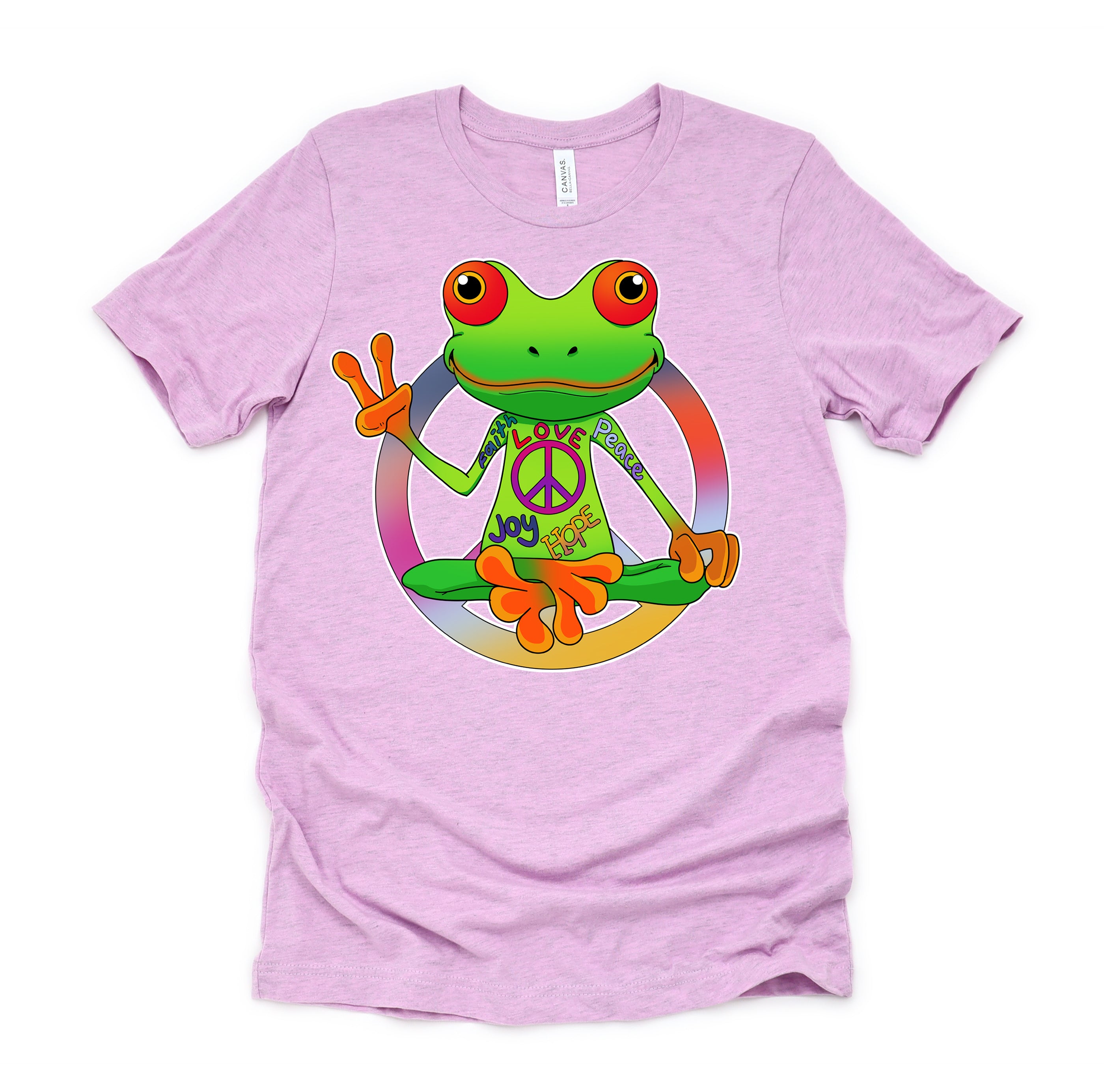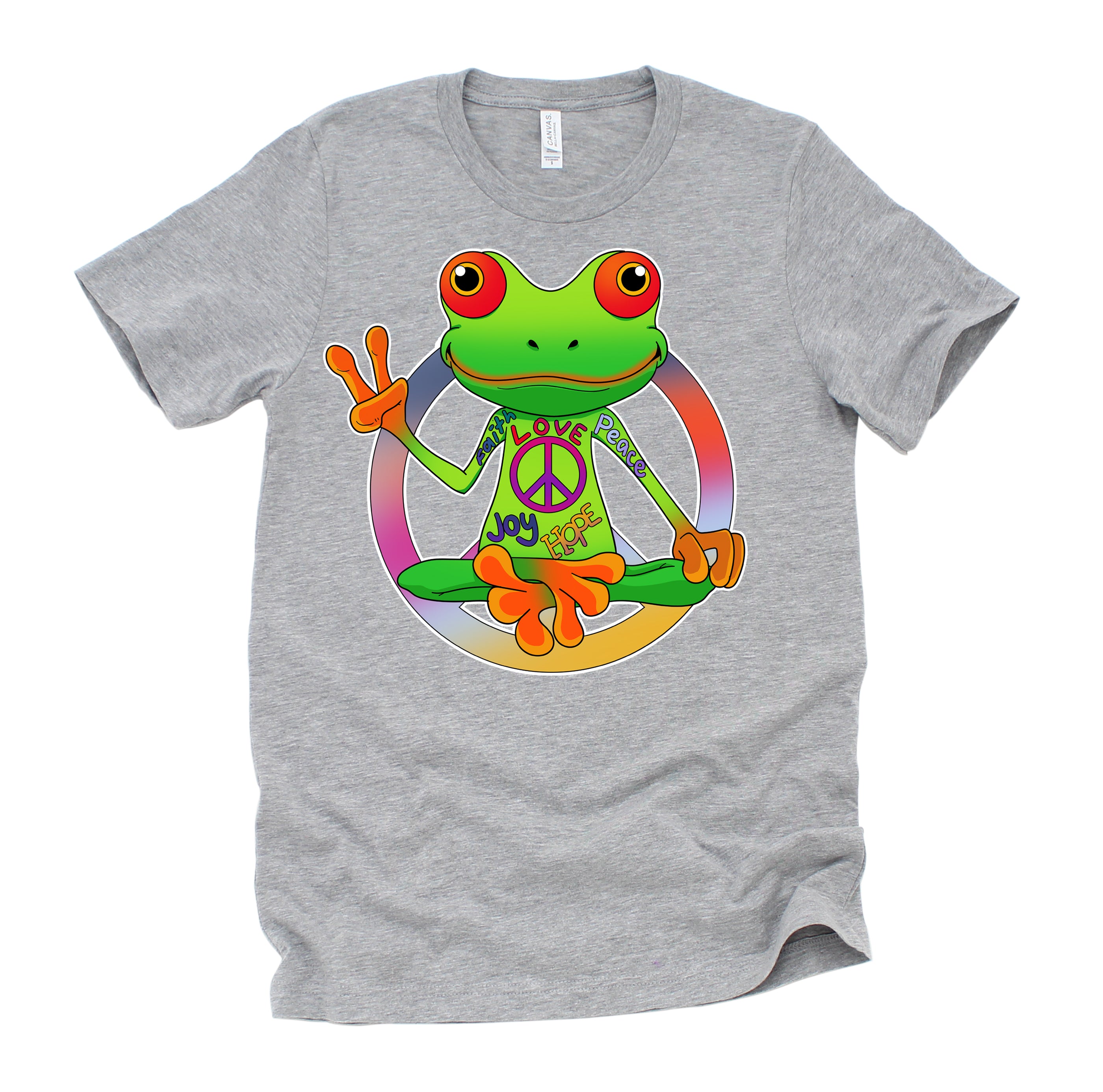 Hippie Frog Peace Sign Yoga Frogs Hippies 70s T-Shirt