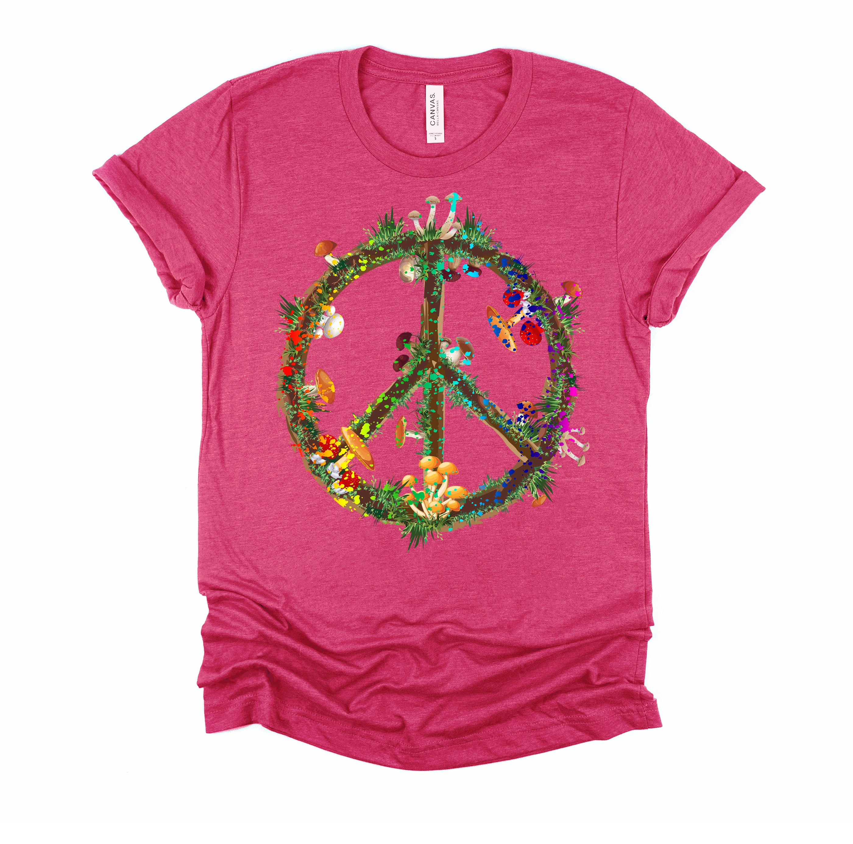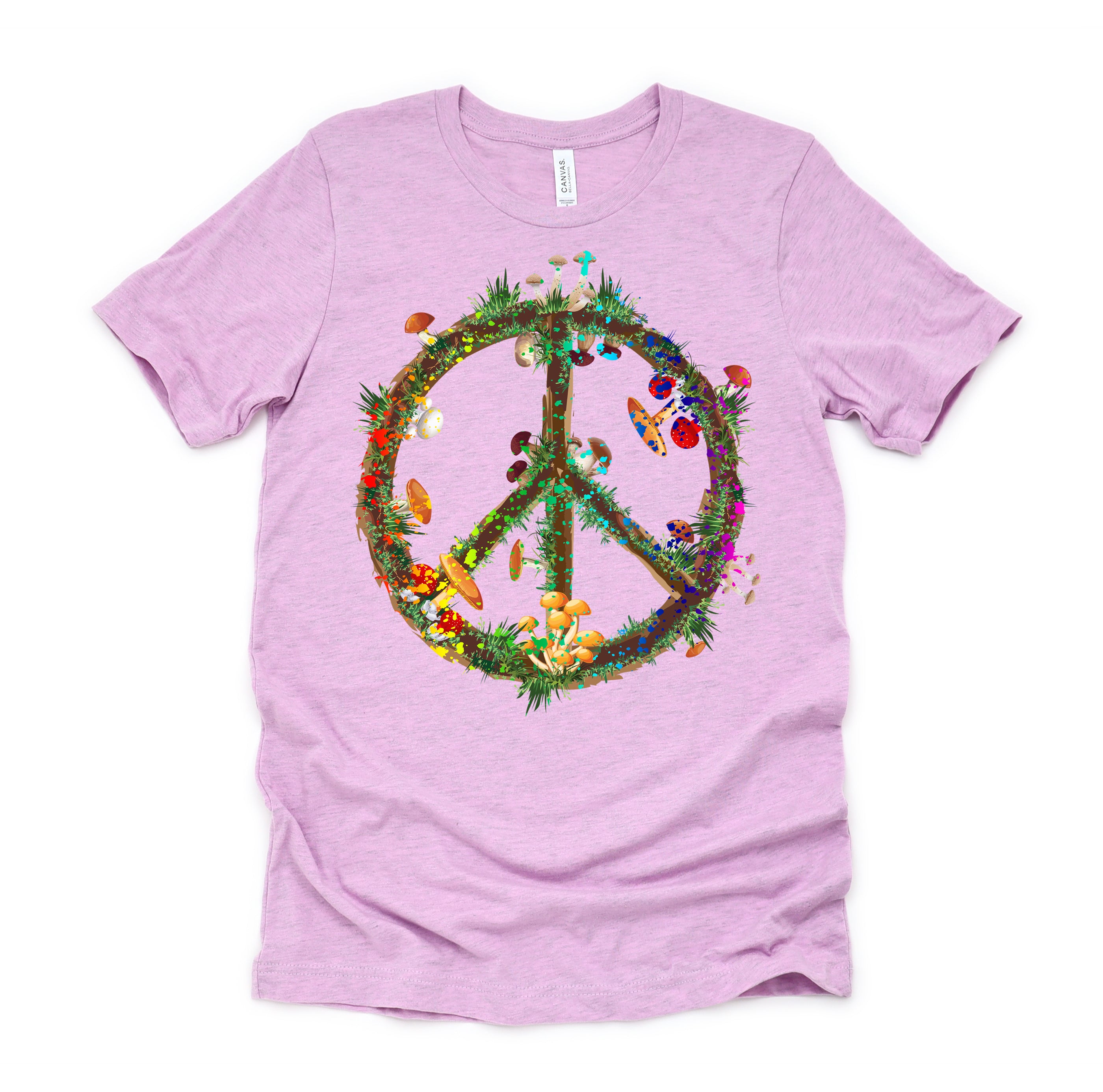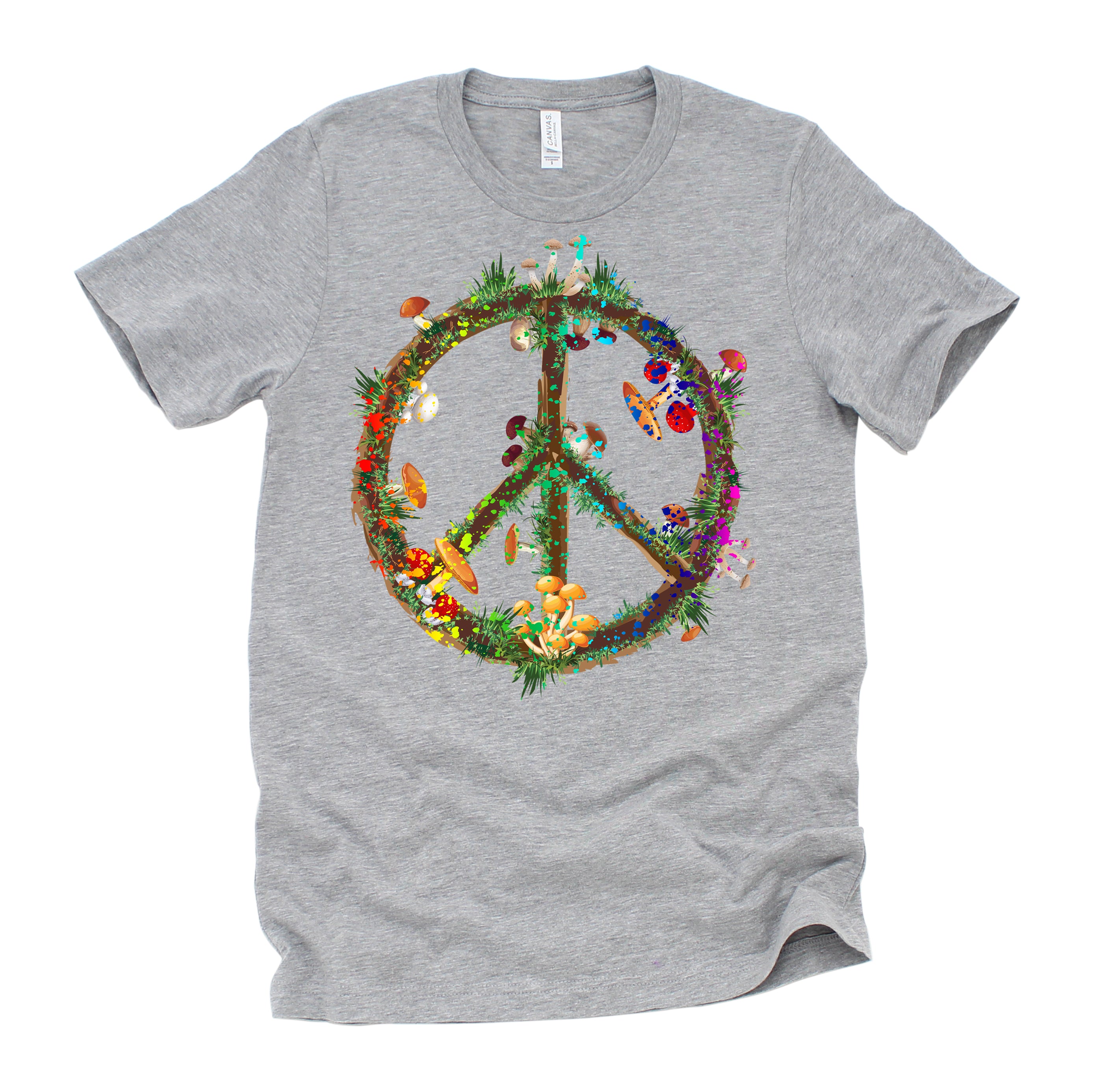 - If you're feeling extra groovy and crazy , get this magical mushroom peace sign graphic design . It's an instant throwback to the carefree decade of the 60s and 70s when drugs , rock and roll and free love ruled.