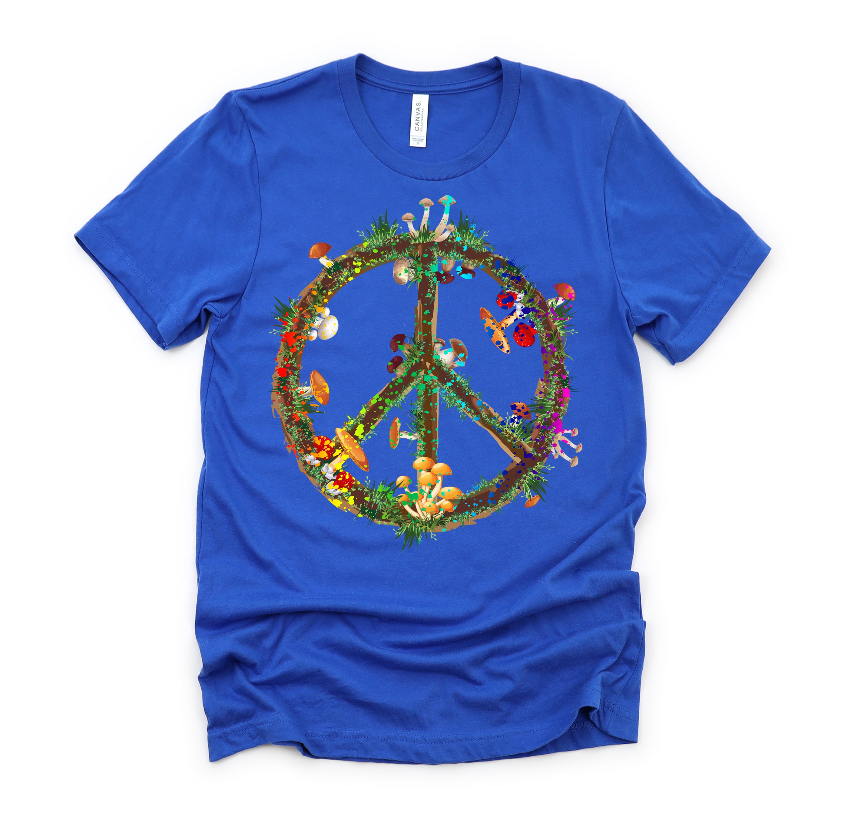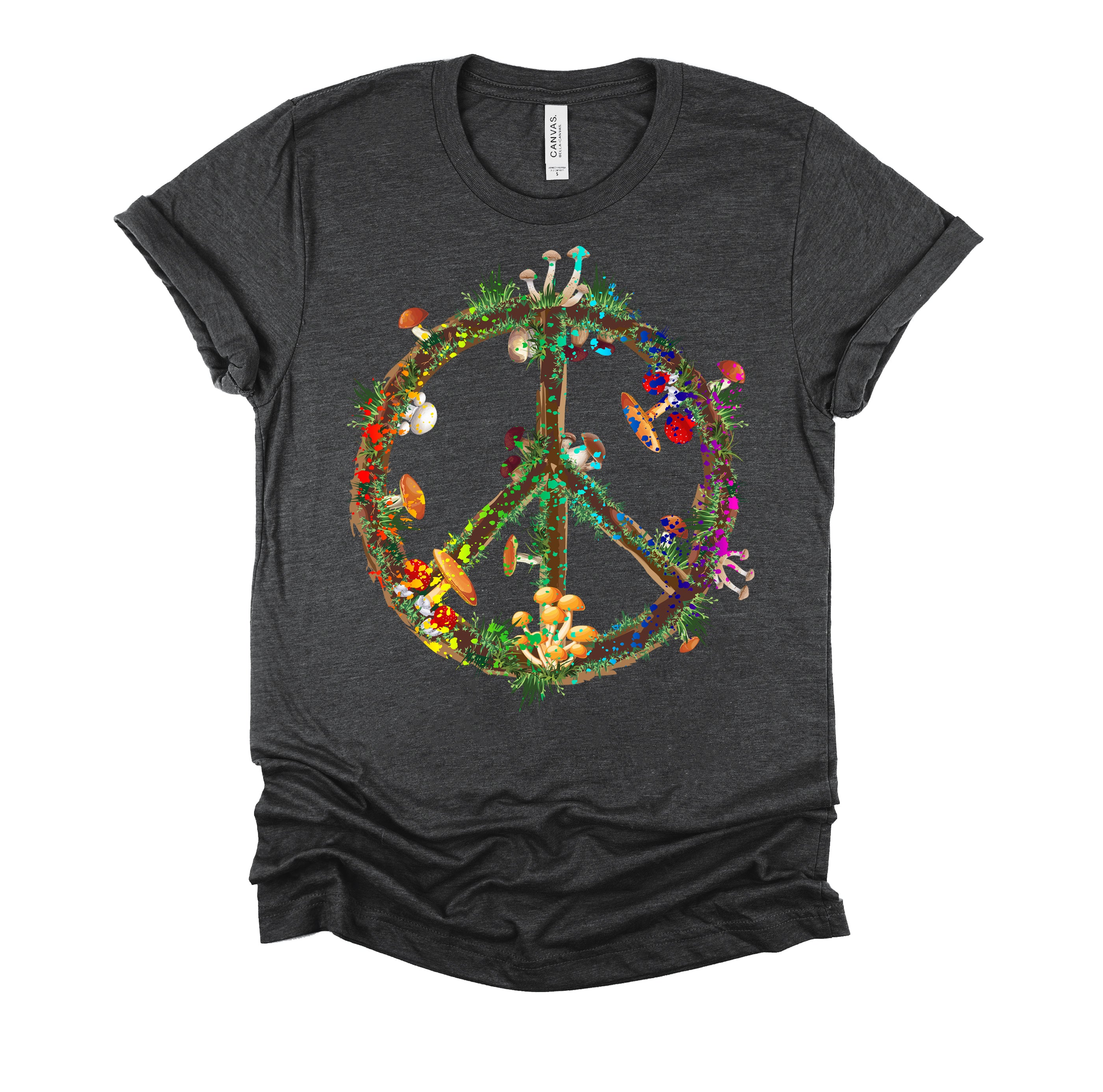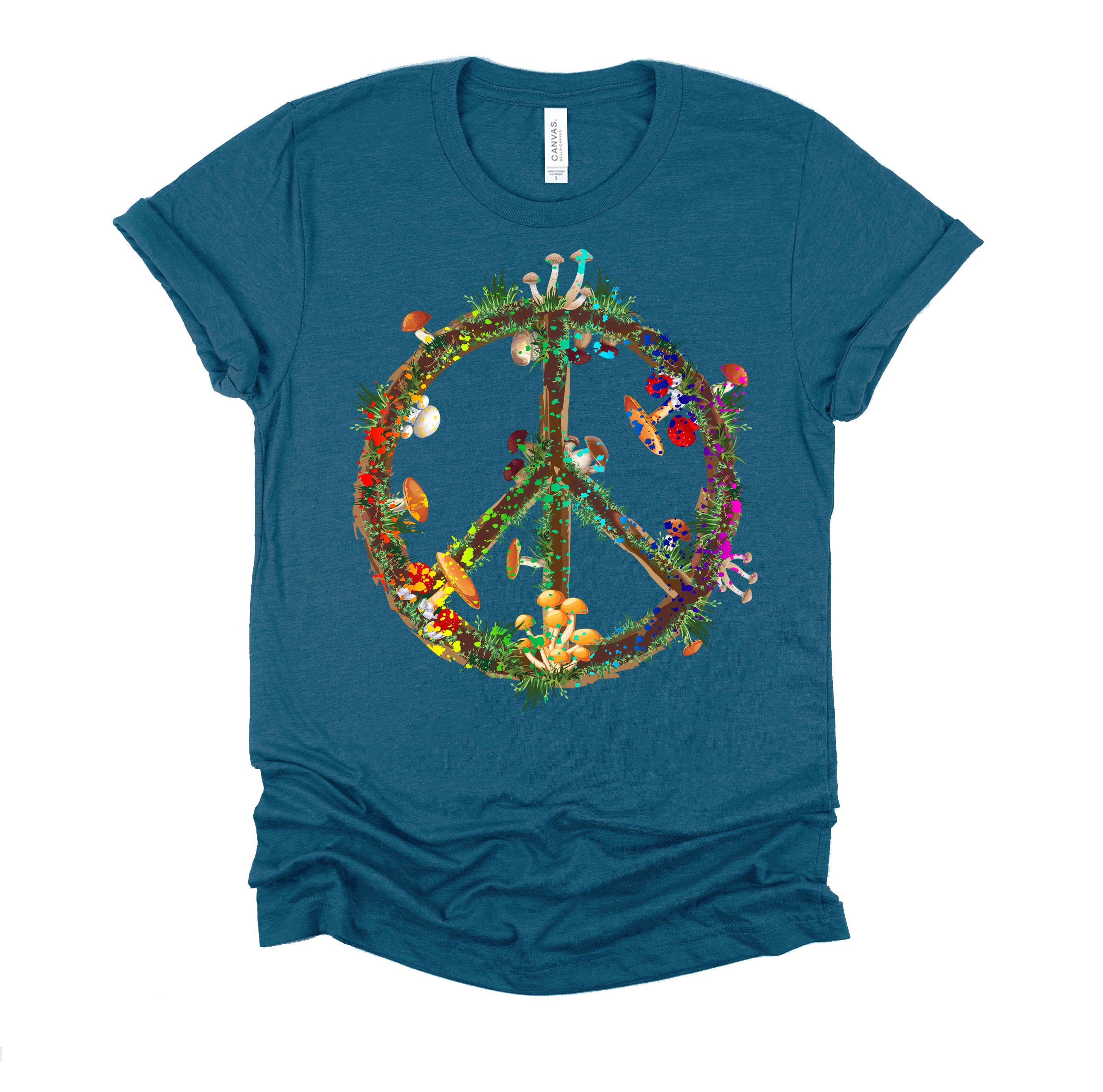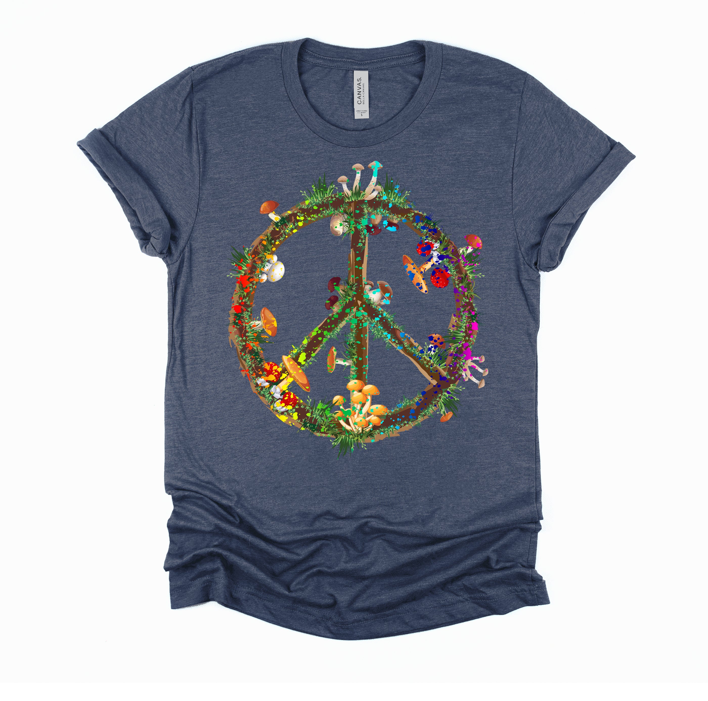 - If you're feeling extra groovy and crazy , get this magical mushroom peace sign graphic design . It's an instant throwback to the carefree decade of the 60s and 70s when drugs , rock and roll and free love ruled.