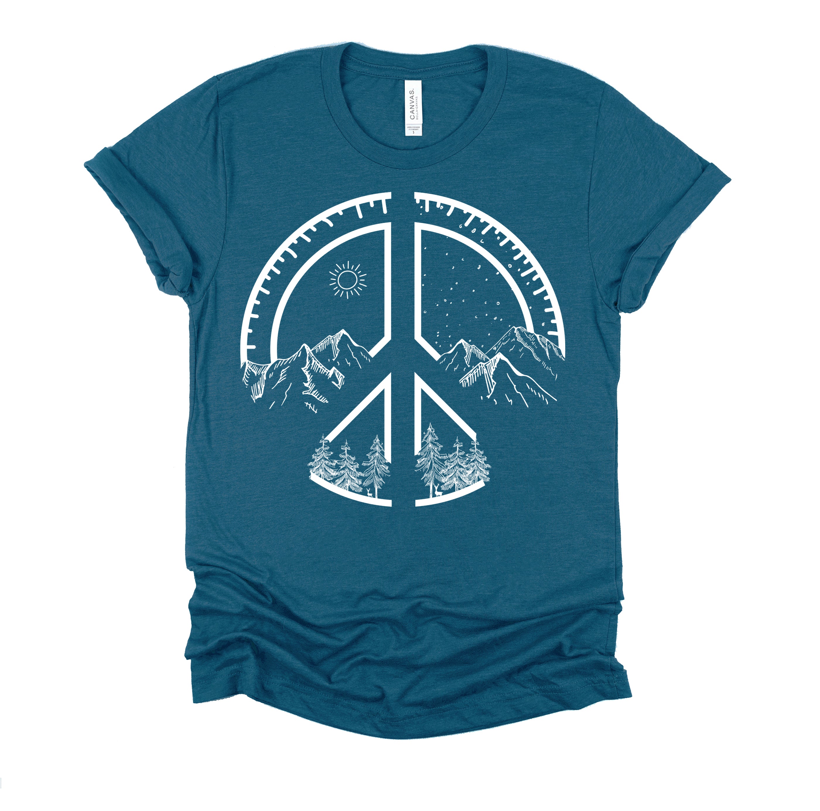 Here's a hippie environmental theme graphic design for a groovy mountaineer or explorer friend or hiking mountain climbing enthusiast . Also for peace people who value kindness , harmony , inner calm and serenity in nature .