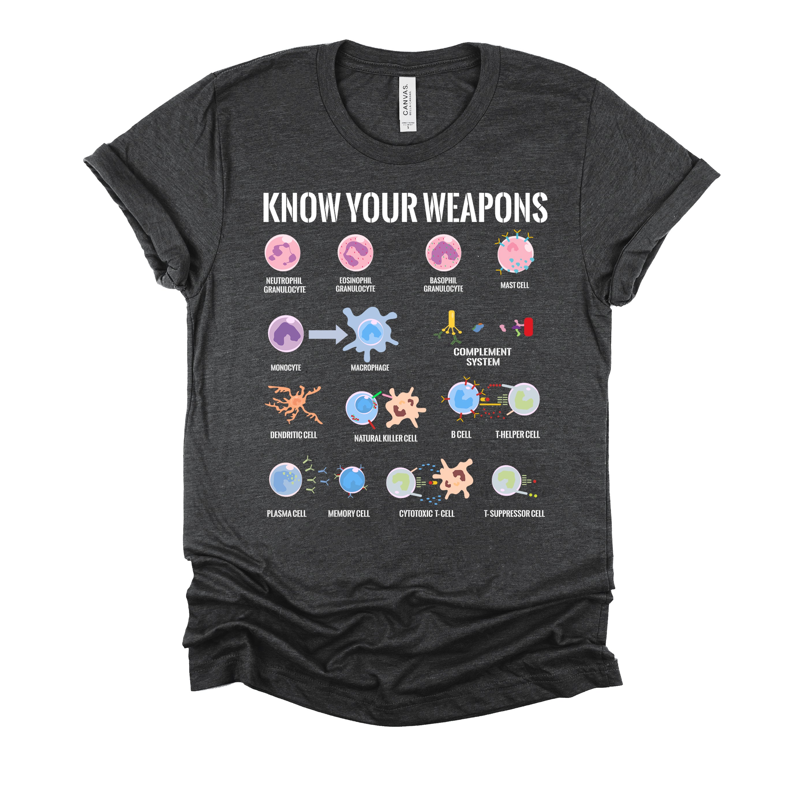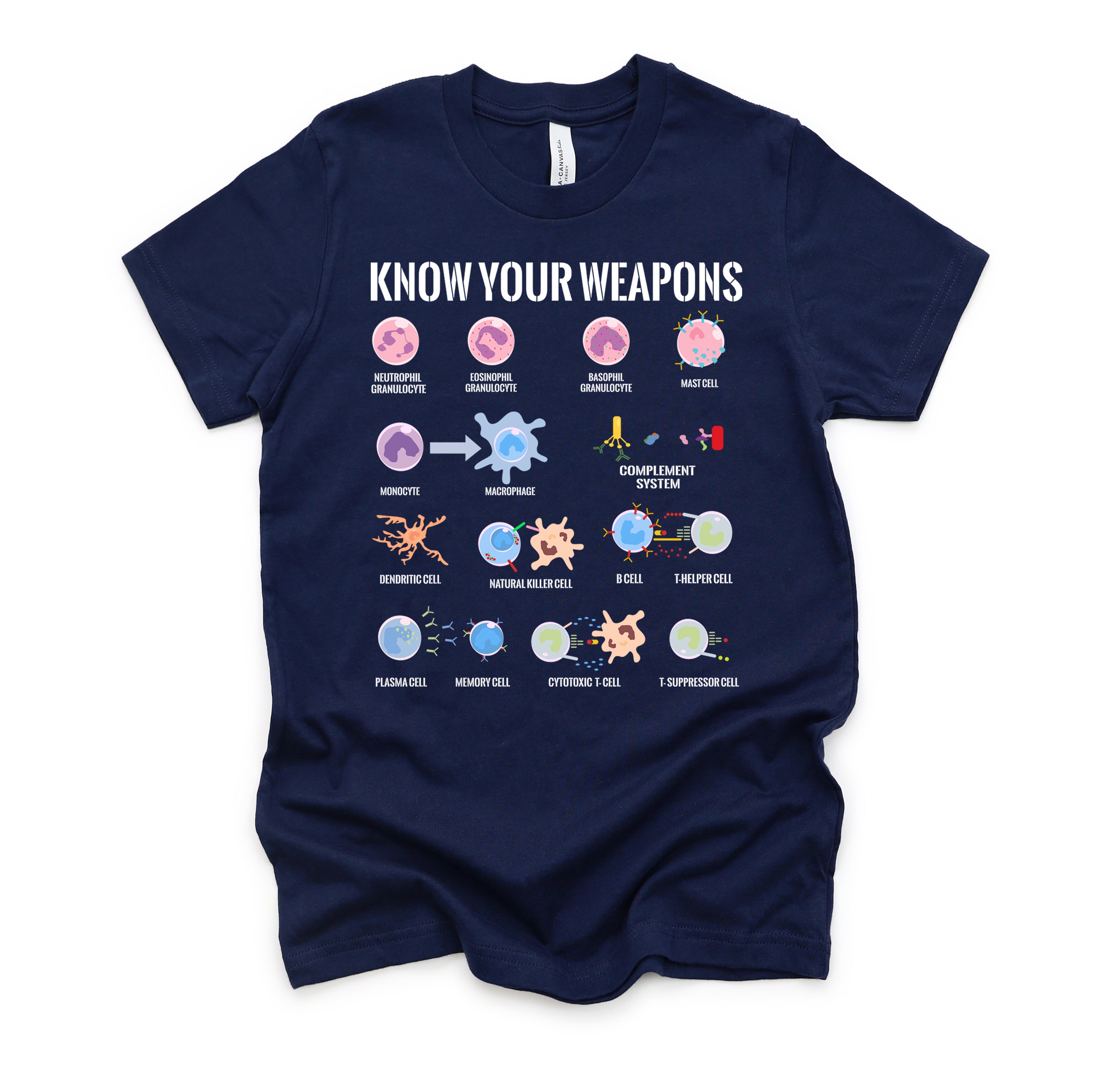 Immune System Cells Tshirt, Microbiology Shirt, Know Your Weapon T Shirt, Funny Biology Gift Unisex T-Shirt XS-4XL