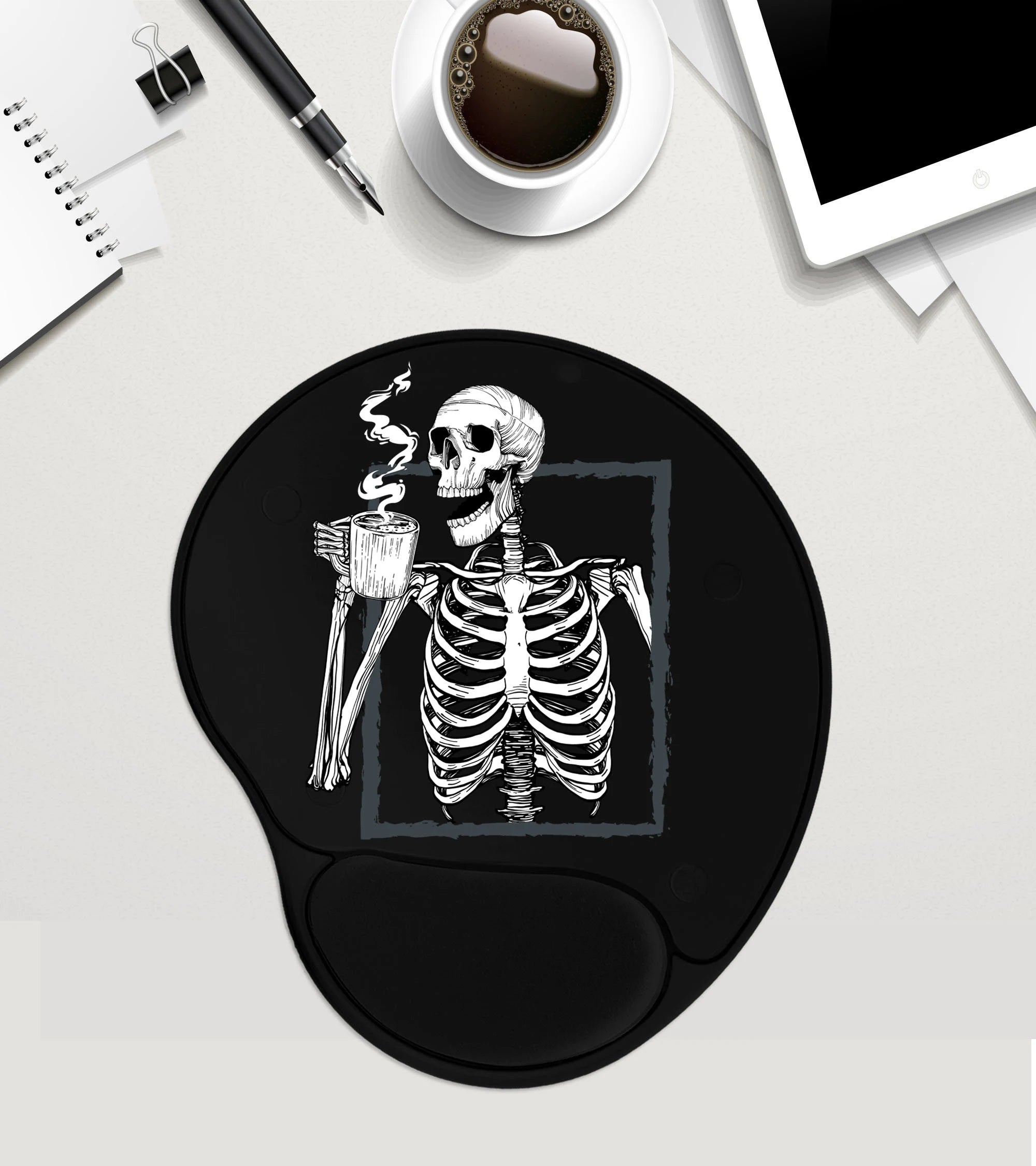 Skeleton Mouse Pad, Coffee Addict Gift, Coffee Lover Gift, Coworker Gift, Custom Mouse Pad With Wrist Rest , Mousepad Gel